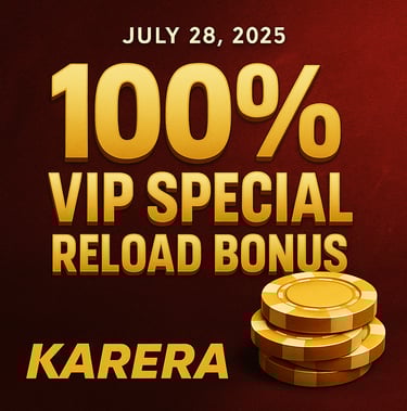 Starting July 28, 2025, all eligible VIP players at KARERA can claim a 100% reload bonus every time they top-up, bringing a whole new dimension of excitement and opportunity. Whether you're into virtual racing, sports wagering, or casino classics, this promotion gives you twice the value to play with and win big.