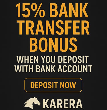 Ride the Winning Streak: Get a 15% Bank Transfer Bonus at KARERA – Deposit with Your Bank Account Today!